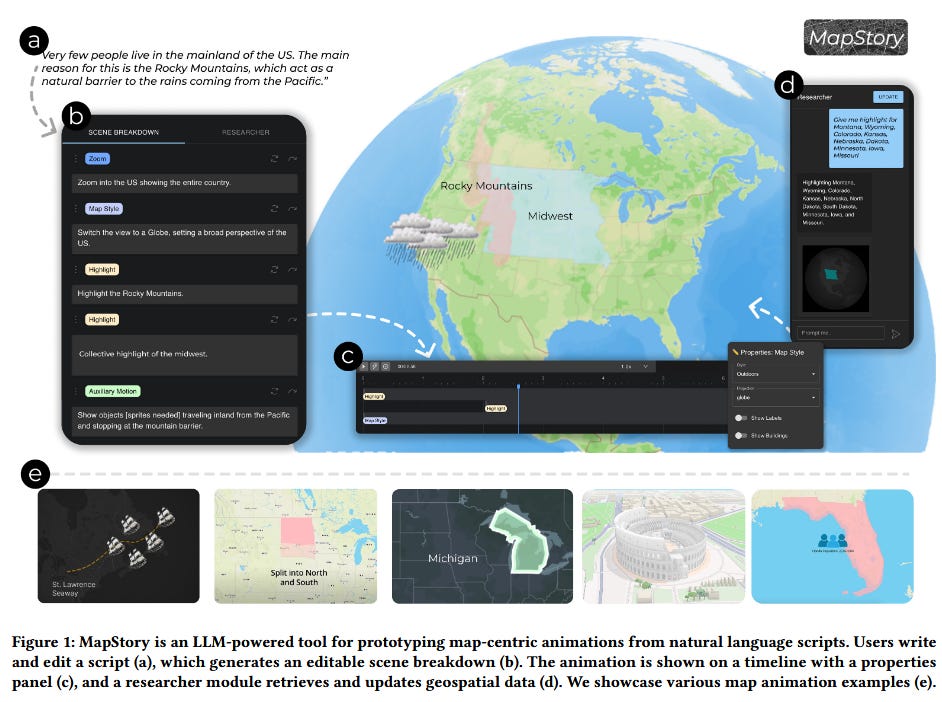 MapStory is an LLM-powered prototyping tool that allows users to create editable map animations directly from natural language scripts.